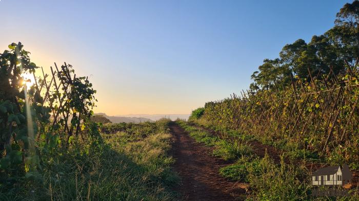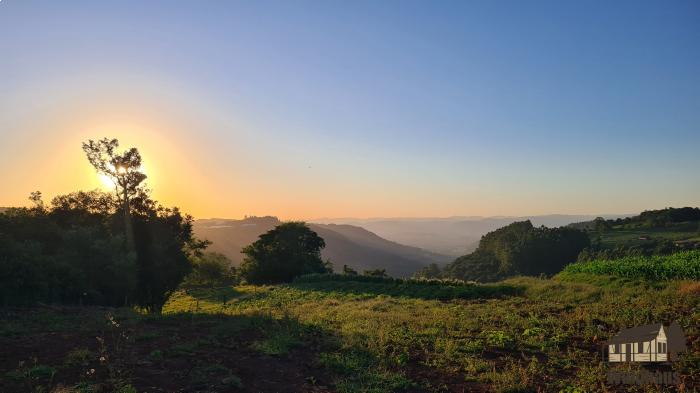 Área parcialmente plana, com vista para o pôr do sol, ideal para quem procura um lugar para se refugiar e curtir a tranquilidade do interior.