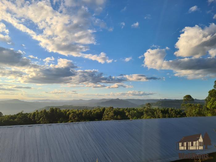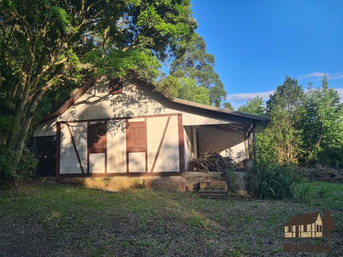 Fração de terras totalmente aproveitável, com casa enxaimel em condições de ser restaurada e aviário em funcionamento.