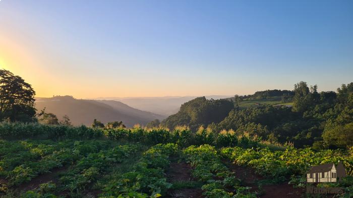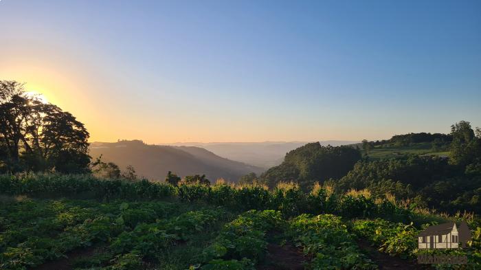 Área parcialmente plana, com vista para o pôr do sol, ideal para quem procura um lugar para se refugiar e curtir a tranquilidade do interior.